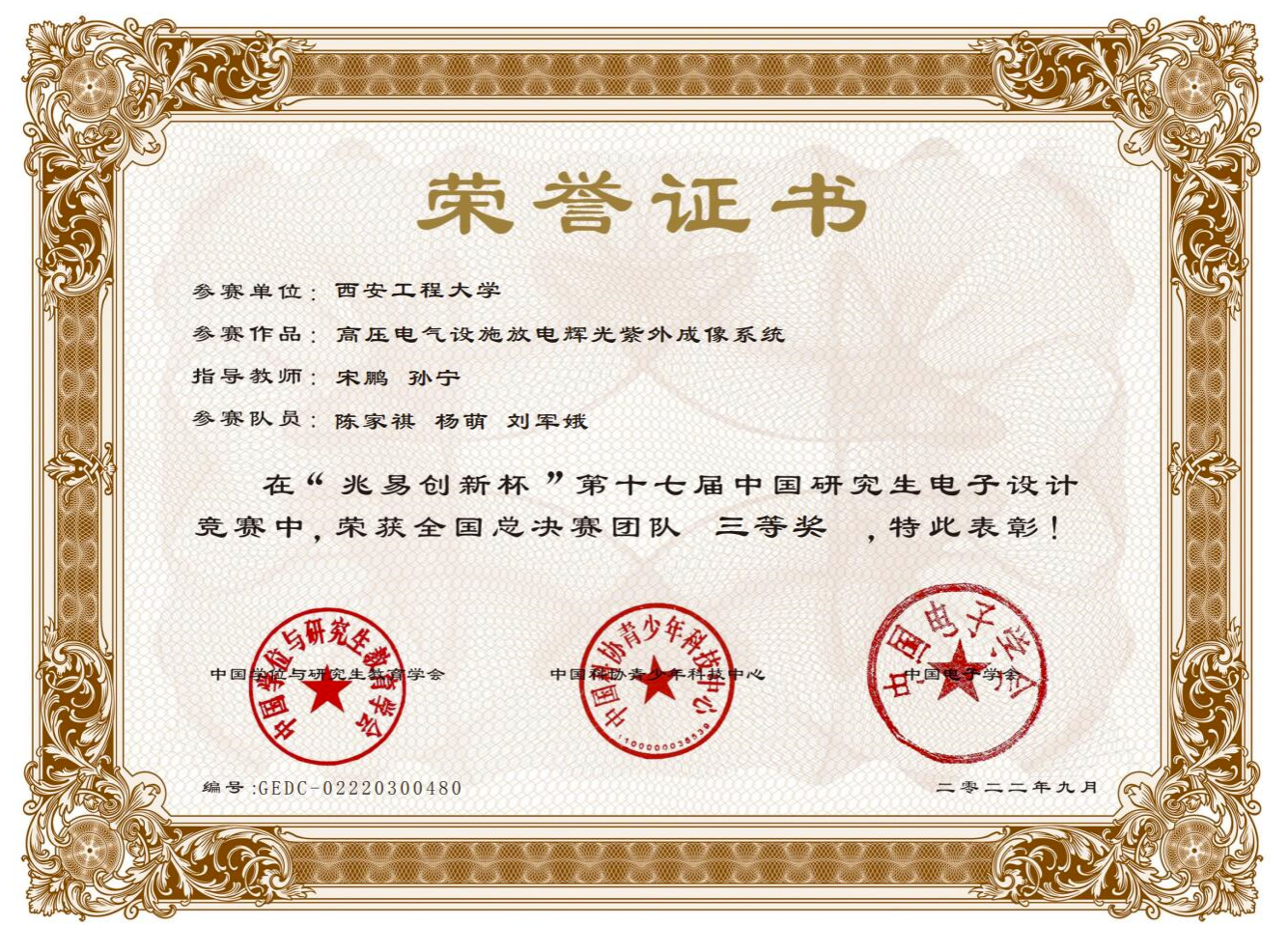 | 4 | 空气能热水器恒温控制系统及其关键技术 | 西安市科学技术三等奖 | 西安市人民政府 | 2018.1 | 朱耀麟 |