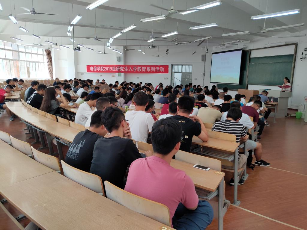 近日,电信公司在教学楼B-133举行了2019级研究生新生入学教育暨导师推介会。电信公司党委副书记刘许,电信公司副经理张蕾副教授及各系主任、研究生导师出席会议。2019级全体研究生及研究生教学秘书行露老师、研究生辅导员赵立涛老师参加了会议。
