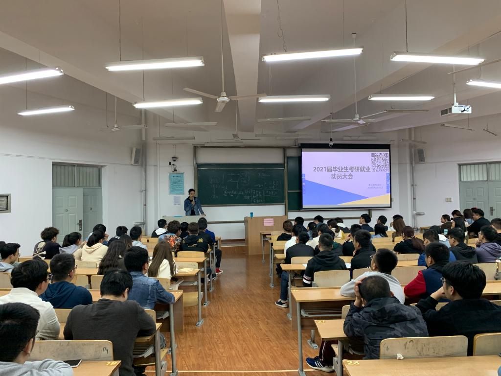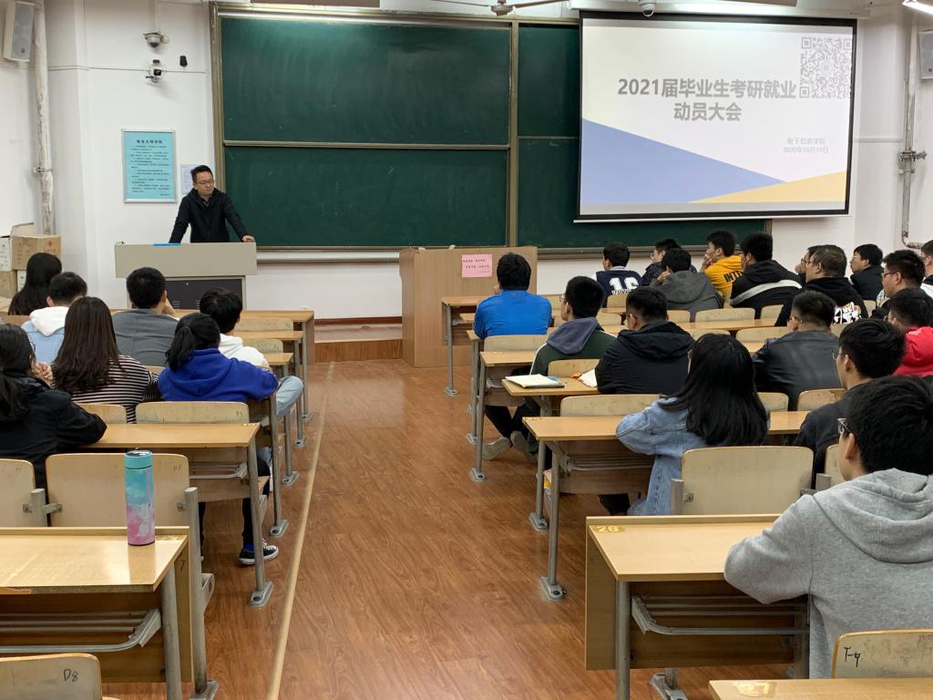 10月19日晚,伟德国际1946源于英国在临潼校区B138和B238教室分别召开2021届毕业生考研、就业工作动员会。电子信息公司党委副书记刘许、全体辅导员及2021届全体毕业生参加会议,会议由就业辅导员黄木委主持。