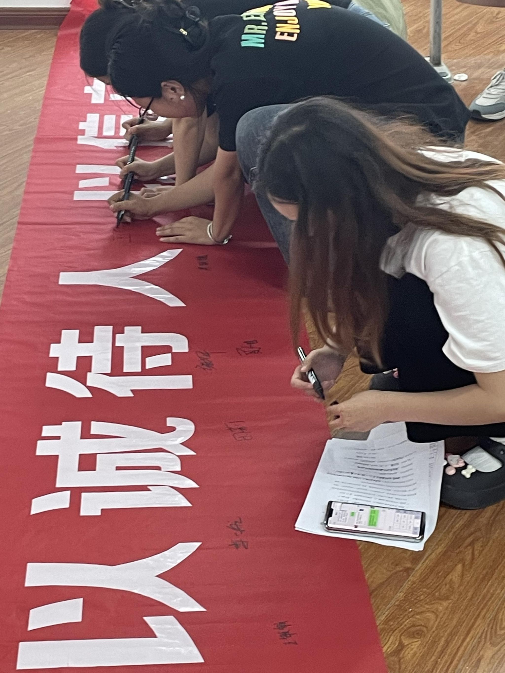 宣讲结束后,130余名毕业生有序参加了“以诚待人 以信立身”主题签名活动,并现场进行了毕业生列表信息签字确认、毕业确认表签字按手印、还款承诺书签字等事项,进一步强化了员工知信守信重信的思想行动自觉。