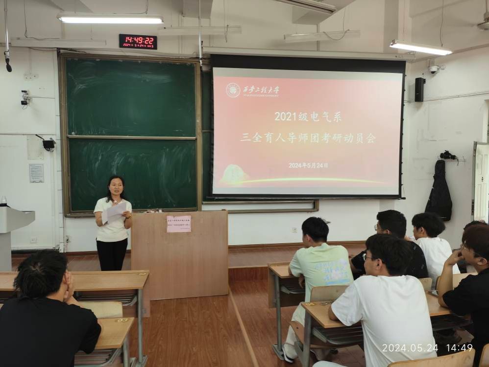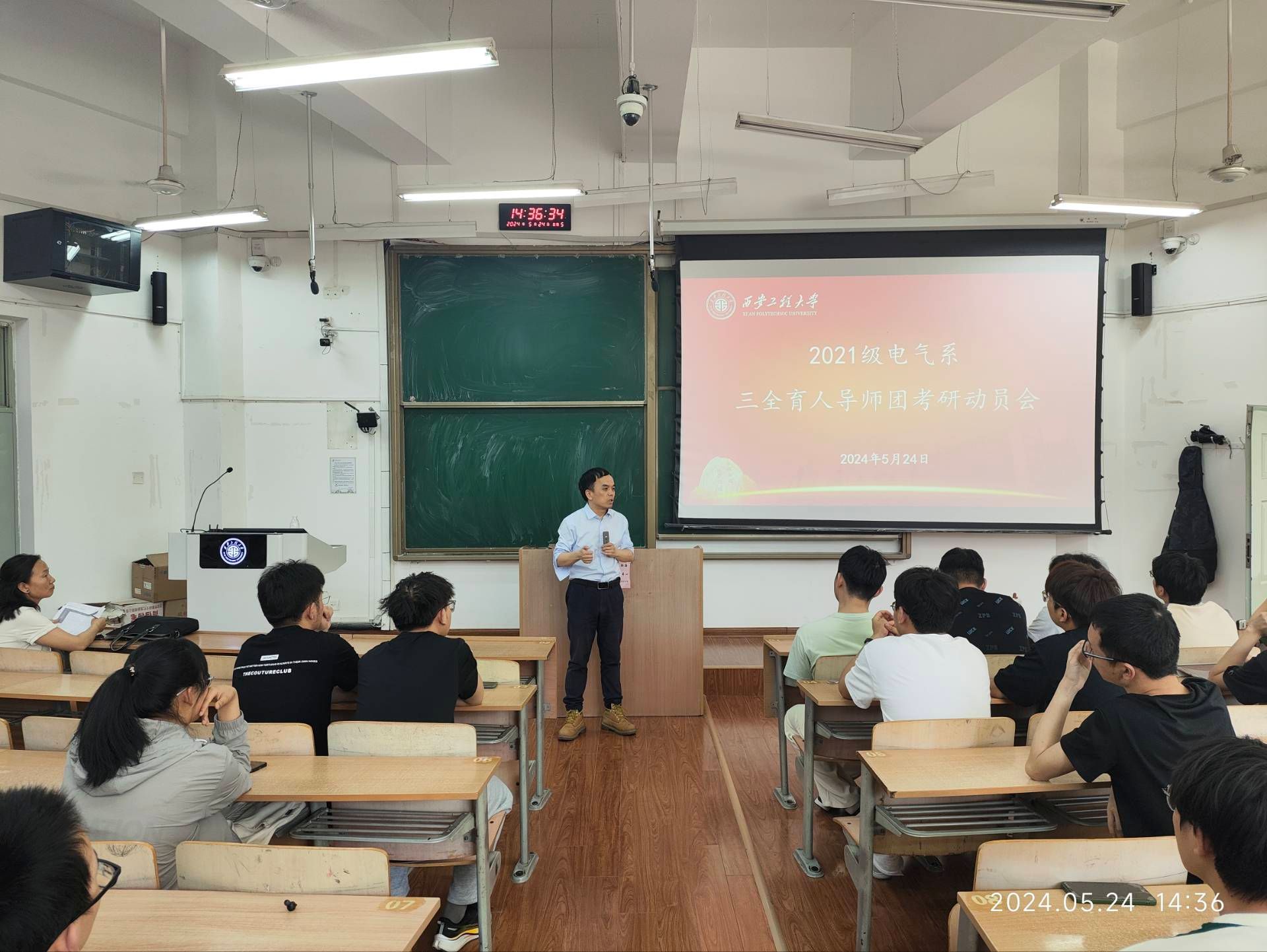 5月24日,伟德国际1946源于英国2021级电气系三全育人导师团在临潼校区教学楼B-135教室召开了考研动员会,系部副主任田毅、专业教师张永宜及导师团全体员工参加了本次动员会,会议由2021级辅导员曹智宇主持。