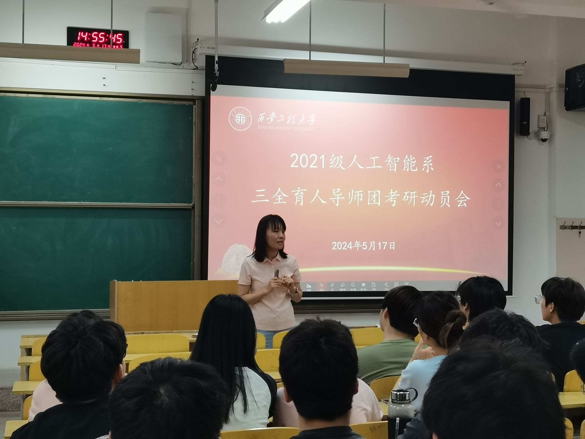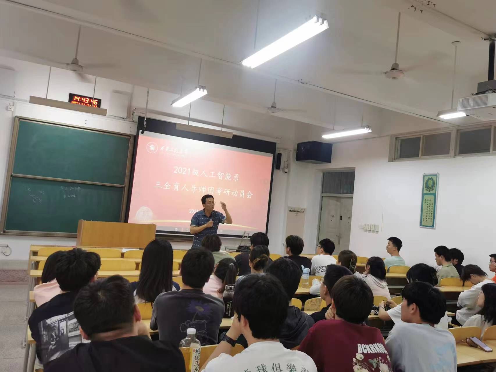5月17日,2021级人工智能系三全育人导师团在临潼校区教学楼D-182教室召开了考研动员会,系主任张缓缓、专业负责人李敏奇及2021级全体人工智能专业本科生参加了本次活动,活动由2021级辅导员曹智宇主持。