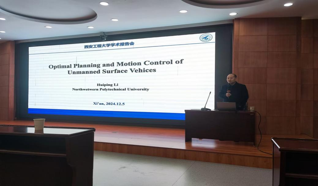 随后,李慧平教授带来了他的报告。李慧平教授首先介绍了海洋航行器的相关背景,海洋航行器是海洋作业的重要工具,在军事和民用领域具有重要的应用前景。接着,李慧平教授针对无人海洋航行器在复杂环境中能耗、控制性能、安全性等方面的迫切需求,引出了先进的模型预测控制技术。主要介绍了基于模型预测控制框架的海洋航行器经济规划和优化控制方法,重点介绍了欠驱动海洋航行器的优化运动控制、海洋航行器的经济预测规划等内容,并展现相关理论、设计过程中的主要问题和实验结果。李慧平教授的报告给同学们提供了许多新的研究思路和方法。