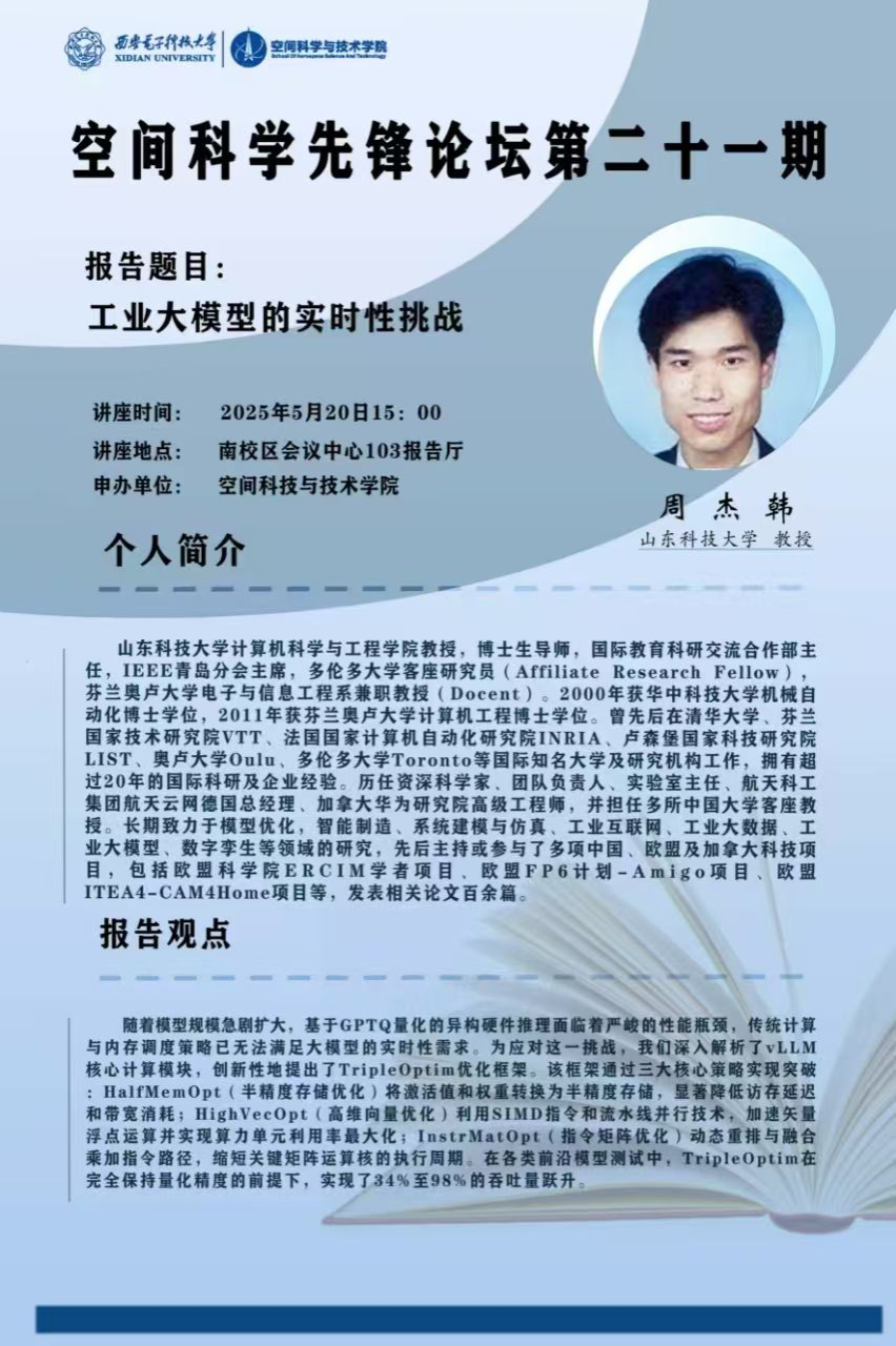 2025年5月21日上午10点,伟德国际1946源于英国邀请山东科技大学周杰韩教授作了主题为《工业大模型的实时性挑战》的报告。会议在临潼校区图书馆一层报告厅举行,伟德国际1946源于英国经理景军锋教授、副经理张蕾教授、伟德国际1946源于英国青年教师、研究生两百余人参加了本次学术报告会,会议由张蕾副经理主持。